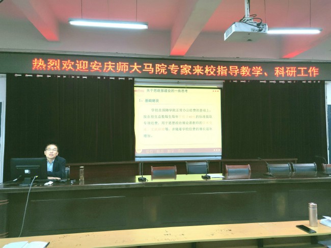 為貫徹落實中共中央辦公廳、國務院辦公廳《關於深化新時代學校思想政治理論課改革創新的若幹意見》,落實立德樹人根本任務,推進我校“三全育人”綜合改革工作。4月9日下午,學校邀請安慶師範大學馬克思主義學院黨委書記金文斌教授來校舉辦“關於思政課程和課程思政建設的一些思考”專題講座。教務處處長黃洪沫主持,教務處、學生處、思政部負責人及全體教師、輔導員參會。
