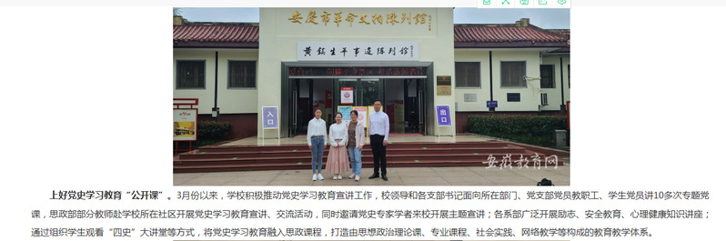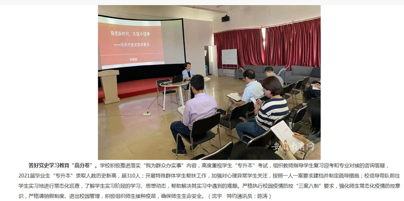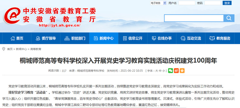 安徽教育網:《桐城師範高等專科學校深入開展黨史學習教育慶祝建黨100周年》