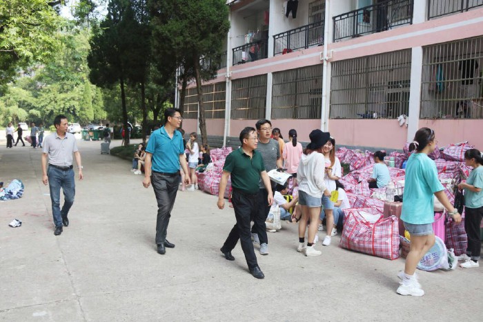 搬遷期間,校領導王子龍、沈波、吳登明、程玉梅、張敏麗、王宏偉分別深入新、老校區學生宿舍和搬遷現場,慰問參與搬遷師生,檢查指導搬遷工作。每到一處,學校領導與搬遷師生親切交流,了解搬遷進度,聽取意見和建議,鼓勵學生克服天氣炎熱等諸多困難,發揚團結互助、吃苦耐勞的精神。同時學校領導還要求學生處、總務處、新建辦、保衛處、各係等單位要把安全工作放在第一位,要各司其職、充分協同、規範操作,做好參與搬遷師生的後勤服務和保障工作。