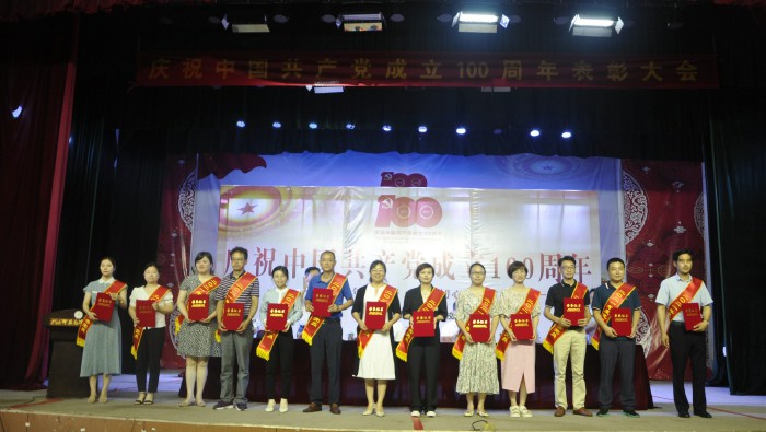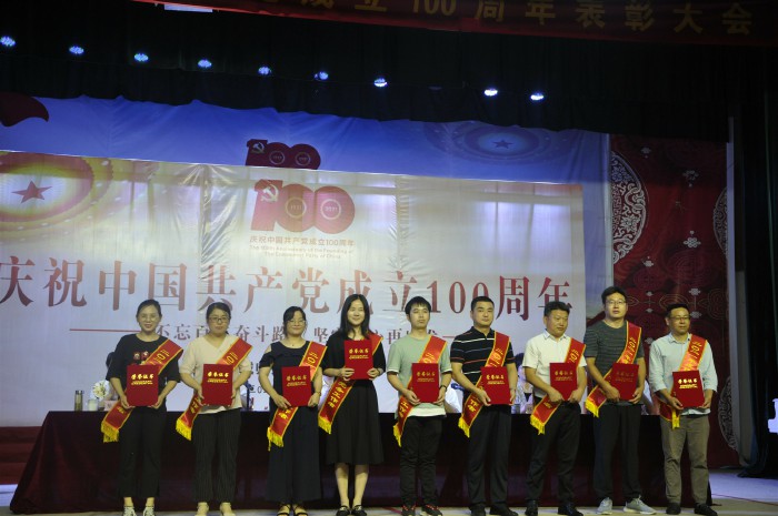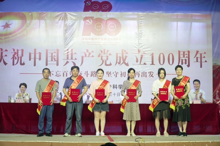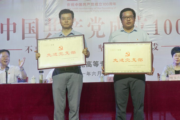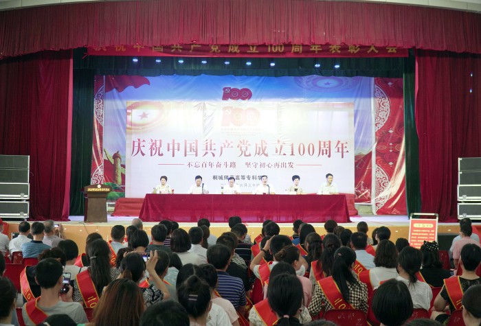 6月30日上午,學校在學生劇場隆重舉行慶祝中國共產黨成立100周年表彰大會暨專題黨課報告會,熱烈慶祝中國共產黨建黨100周年,紮實開展黨史學習教育,表彰今年以來我校在全麵深化綜合改革、紮實推進內涵發展中湧現出來的先進基層黨組織和優秀個人,頒發“光榮在黨50年”紀念章。校級領導班子成員,“光榮在黨50年”紀念章獲得者、先進集體代表、先進個人及全體教職工參加了慶祝表彰大會。會議由黨委副書記、校長沈波主持。