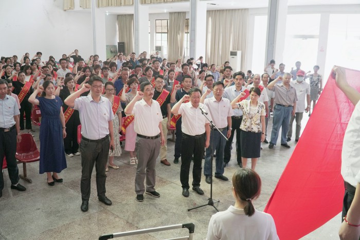 在王子龍帶領下與會全體黨員一道重溫入黨誓詞。