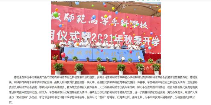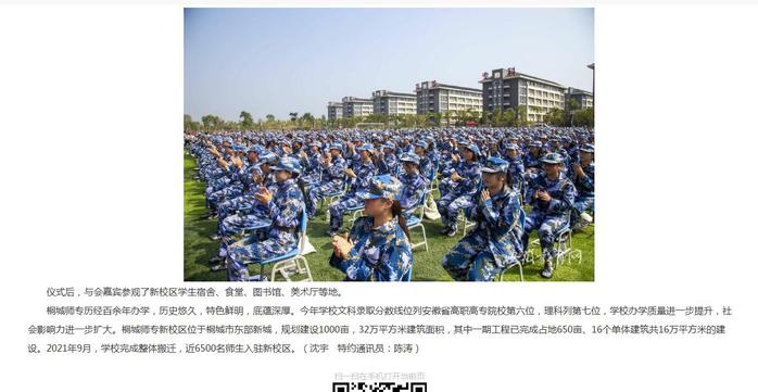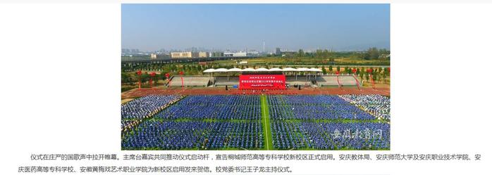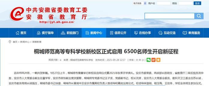 安徽教育網:《桐城師範高等專科學校新校區正式啟用 6500名師生開啟新征程》