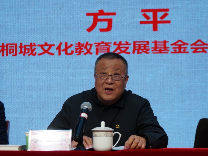 安慶市桐城文化教育發展基金會執行理事長、蚌埠原市委書記方平代表主辦單位安慶市桐城文化發展教育基金會致辭。