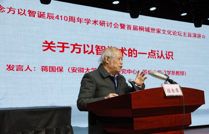 安徽大學方以智研究中心特聘教授、蘇州大學教授蔣國保作了《對方以智學術的一點認識》主旨演講。