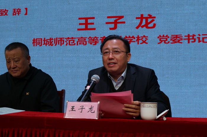 桐城師範高等專科學校黨委書記王子龍代表主辦單位桐城師專致歡迎詞。