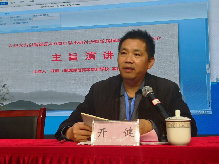 11月10日,由桐城師範高等專科學校和安慶市桐城文化教育發展基金會主辦、桐城派學術研究中心承辦的紀念方以智誕辰410周年學術研討會暨首屆桐城世家文化論壇在桐城師專成功舉辦,來自中山大學、蘇州大學、安徽大學、廣東省社會科學院、安徽省博物院、安徽文藝出版社、黃山書社、桐城派學術研究中心、桐城市文旅體育局、桐城文史愛好者共40多人參加了本次論壇。桐城師專黨委書記王子龍、校長沈波、安慶市桐城文化教育發展基金會執行理事長方平、桐城市政府副市長汪傑賢、桐城市政協副主席汪艾東等出席會議並致辭。方以智研究專家蔣國保(蘇州大學教授)、邢益海(廣東省社科院研究員)、張永義(中山大學教授)等作主旨演講,10位同誌作主題發言,諸偉奇教授(安徽大學徽文院)作大會總結。說明:8b8adddb7781c8dff914f676c814886