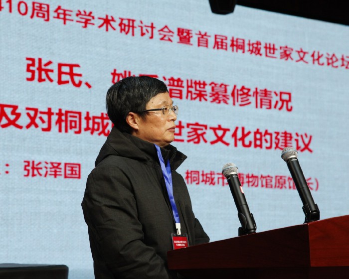 張英後裔、桐城市博物館原館長張澤國先生介紹張氏、姚氏譜牒纂修情況及對桐城弘揚世家文化的建議。