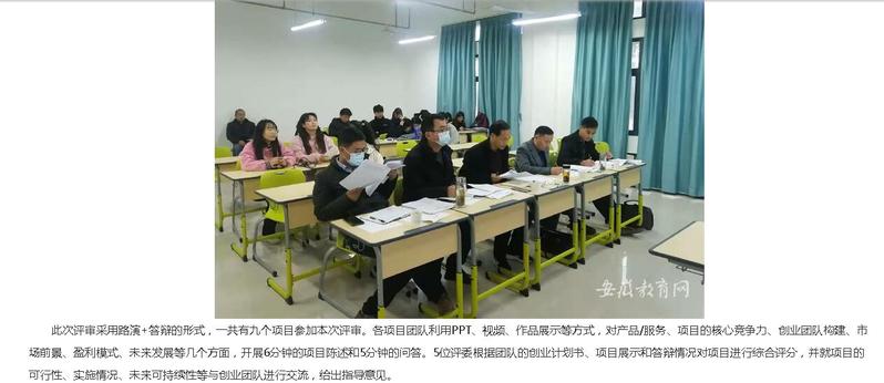 安徽教育網:《桐城師範高等專科學校大學生創業孵化基地入駐項目評審答辯引發關注》