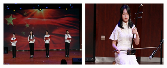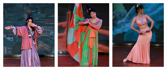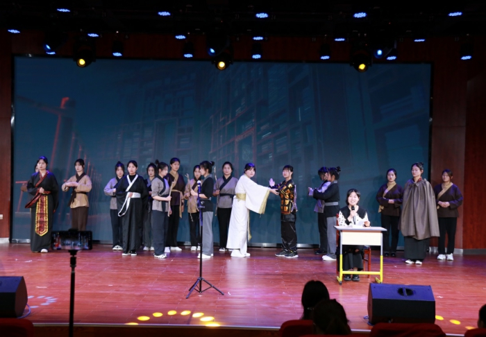 展演在古箏演奏《盛世國樂》中拉開帷幕,國寶解說《人頭壺》借物抒情,娓娓道來,傾訴著同學們對中國優秀傳統文化的自豪與熱愛以及對古代勞動人民勤勞和智慧的讚歎與崇敬,令人耳目一新。朗誦《鳳求凰》聲情並茂,觸人情腸。舞蹈節目《民族舞串燒》、《十麵埋伏》和《阿格祥巴》舞姿優美,贏得陣陣掌聲,充分展現了我校學子深厚的藝術文化底蘊和輕舞風揚。古箏演奏《知否》和笛子演奏《青花瓷》均用悠揚的旋律演繹出了中國傳統樂器的旋律美和意蘊美。小學教育係自創自導自演的曆史劇《古今對話》將匯演推向高潮,同學們用打破時空壁壘的對話形式展示了《史記》“史家之絕唱,無韻之離騷”的悠長獨特韻味,詮釋著我校學子對傳承和弘揚中國優秀傳統文化的信心、決心和行動。古詩詞吟誦《橘頌》融入了吟、誦、舞等多種表演形式,將中國傳統文化的一脈相承與兼容並包展現得淋漓盡致,為整場演出拉上了唯美劇幕。