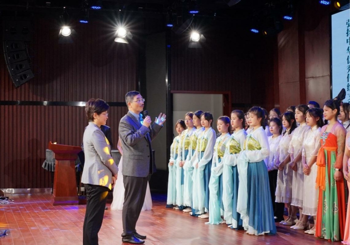 本次展演活動,師生共同誦讀詩篇,演繹中華經典;觀者一起曆覽千載,共享文化盛宴。沈波在總結講話中首先對活動的成功舉行表示熱烈祝賀,他指出這次展演是我校打造弘揚優秀傳統文化品牌活動的起點,不僅是前期我校開展優秀傳統文化教育的成果展示,更是今後繼續進行優秀文化傳承的重要途徑和動力。作為新時代大學生,我校學子要牢牢樹立“修身養性齊家治國平天下”的意識,在學習生活中不斷挖掘、學習、傳承中華優秀傳統文化蘊含的思想觀念、人文精神,同時結合時代要求,與之俱進,不斷傳承創新和發展,努力綻放中華優秀傳統文化的永久魅力和時代風采。各部門、各係要通過對國風優秀傳統文化展演等形式不斷樹立文化品牌意識,努力將中華優秀傳統文化更好融入我校第二課堂教育教學和學生生活實際,引領我校師生立君子之品,做有德之人,感先賢智慧,傳文化精粹。