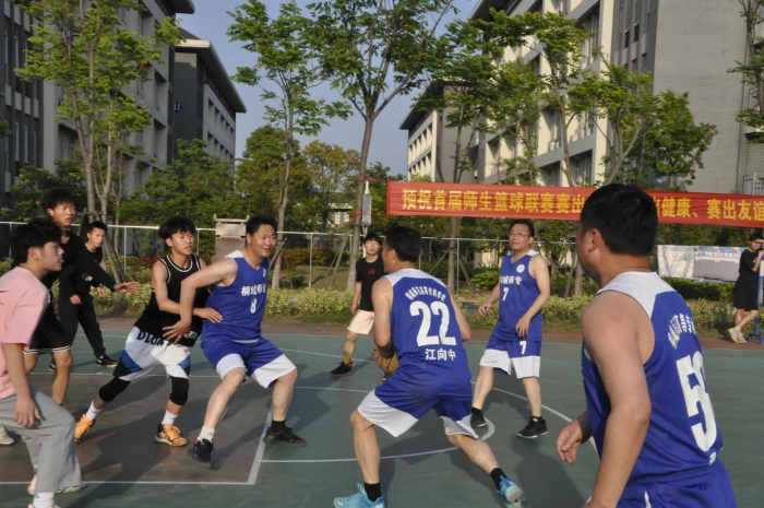 為豐富我校師生課餘文化生活,提高學生的身體素質,為師生搭建健康運動的平台,為廣大同學們提供了展示自我、放飛青春的精彩舞台,增強師生之間的凝聚力,打造師生一家親的和諧氛圍,學校舉辦2022年“戰疫情、強體魄”師生籃球友誼賽,比賽分積分循環賽和交叉淘汰賽兩個階段進行,第一場循環賽於5月2日在學校籃球場舉行。本次比賽由校工會主辦、桐城師專悅動籃球俱樂部承辦,參賽隊伍為教師聯隊和五個係的學生代表隊,校黨委書記王子龍,黨委委員、組織人事處處長王宏偉參加在教師隊伍中。