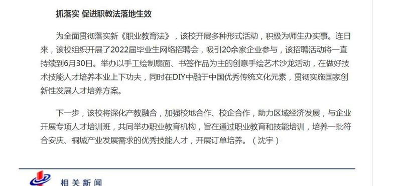 中安在線:《桐城組織開展新《職業教育法》學習宣傳活動》