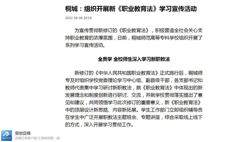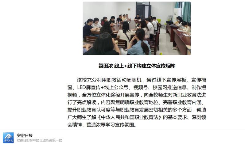 安徽日報:“桐城:組織開展新《職業教育法》學習宣傳活動”