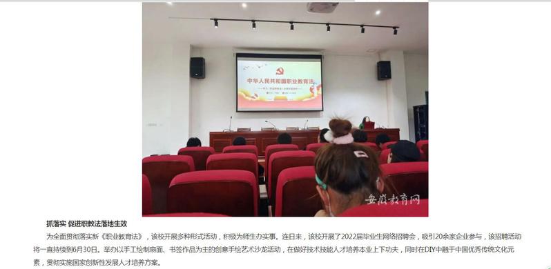 安徽教育網:《桐城師範高等專科學校開展新職業教育法普法宣傳教育活動》