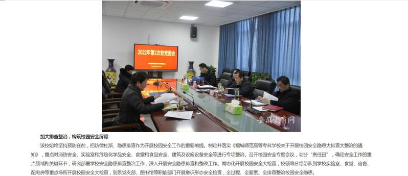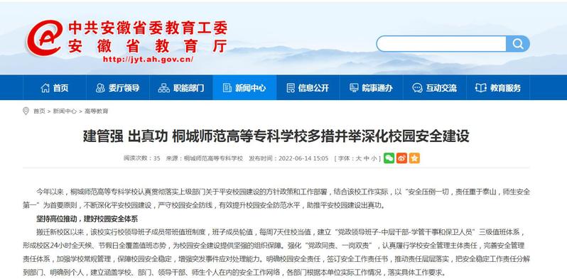 安徽教育網:《建管強 出真功 桐城師範高等專科學校多措並舉深化校園安全建設》