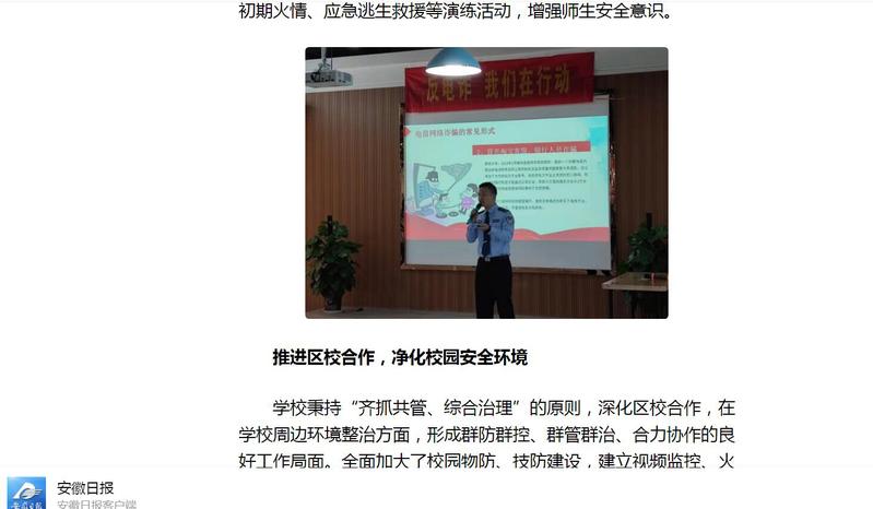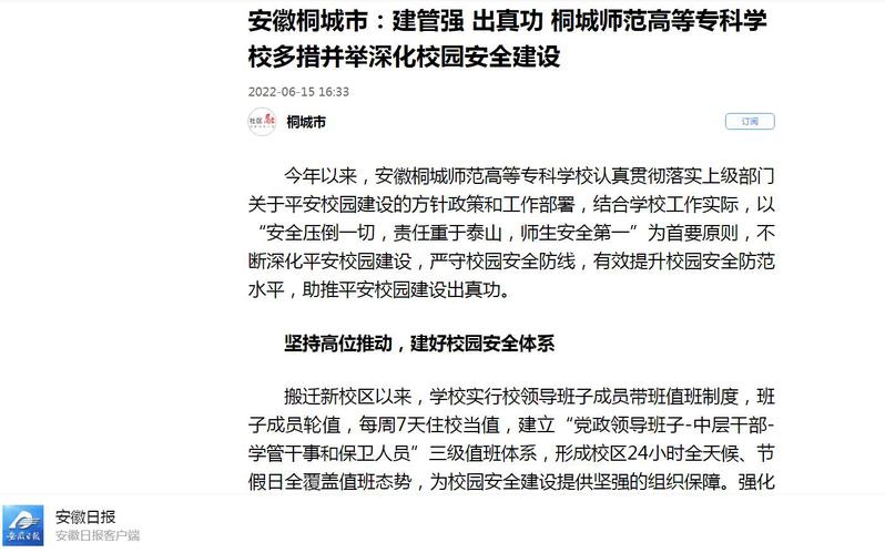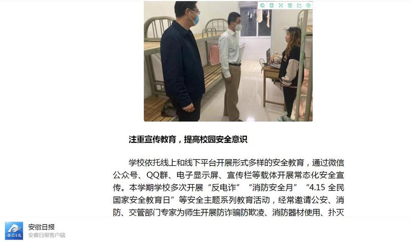 安徽日報:《安徽桐城市:建管強 出真功 桐城師範高等專科學校多措並舉深化校園安全建設》