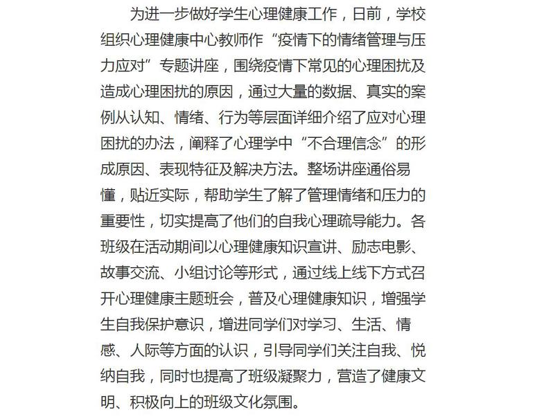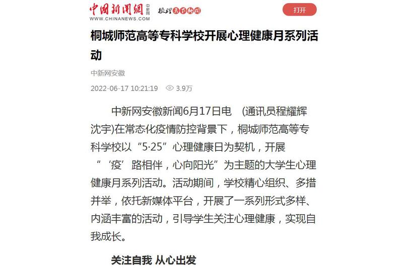中國新聞網:《桐城師範高等專科學校開展心理健康月係列活動》