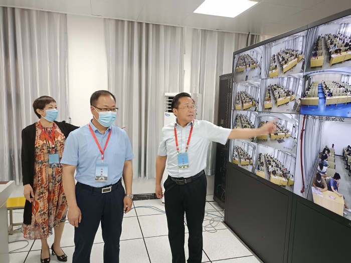 在安慶醫藥高等專科學校黨委書記葉林霞,黨委副書記、校長姚文兵陪同下,王子龍一行先到標準化考場監控室對考場整體情況進行初步了解,隨後前往考場現場進行了巡考。巡考工作結束後,王子龍與葉林霞、姚文兵就考務工作進行了交流,並對安慶醫藥高等專科學校為此次考務工作辛勤付出的工作人員表示感謝。