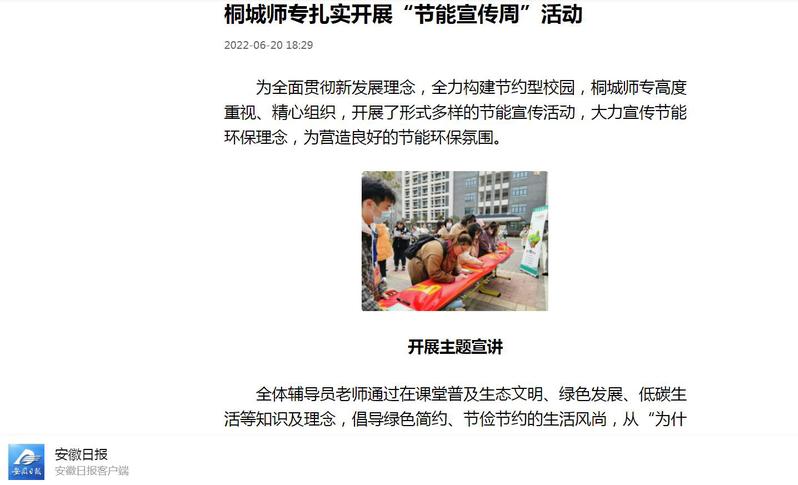 安徽日報:《桐城師專紮實開展“節能宣傳周”活動》