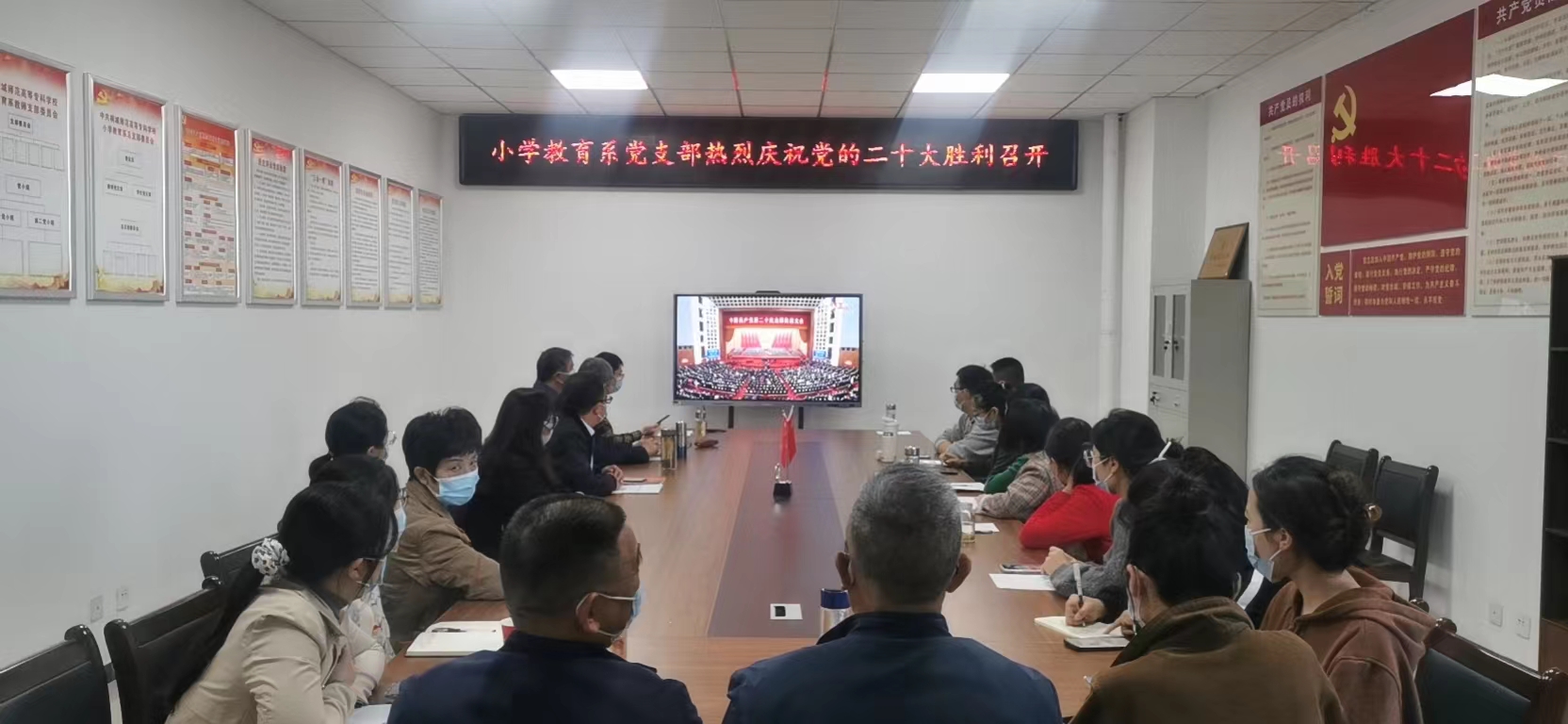 1016日上午10時,中國共產黨第二十次全國代表大會在北京人民大會堂隆重開幕。中共中央總書記、國家主席、中央軍委主席習近平代表第十九屆中央委員會向大會作報告。桐城師專全體黨員、幹部、職工、入黨積極分子、學生代表通過直播集中收看中國共產黨第二十次全國代表大會開幕會,認真聆聽習近平總書記作的報告。