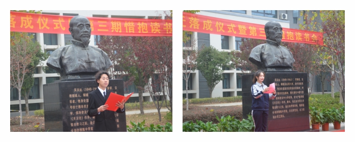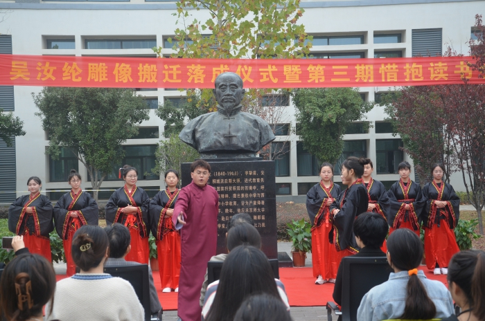 在吳汝綸雕像搬遷落成之際,舉辦了以“閱讀吳汝綸”為主題的第三期惜抱讀書會,小學教育係教師雷小麗、項波做“吳汝綸生平及成就”的主題分享,生動講述了吳汝綸先生的思想、成就和對文化、教育的傑出貢獻;小學教育係劉心怡同學分享了閱讀《深州風土記》的感悟、薑利敏同學根據自己的閱讀體會對吳汝綸作品進行了比較和分析、李思涵同學分享了吳汝綸教育思想的學習體會;學前教育係黃煜森同學朗誦了《遵旨籌議折(節選)》;活動在《百字銘》(改編)的吟誦中圓滿結束。
