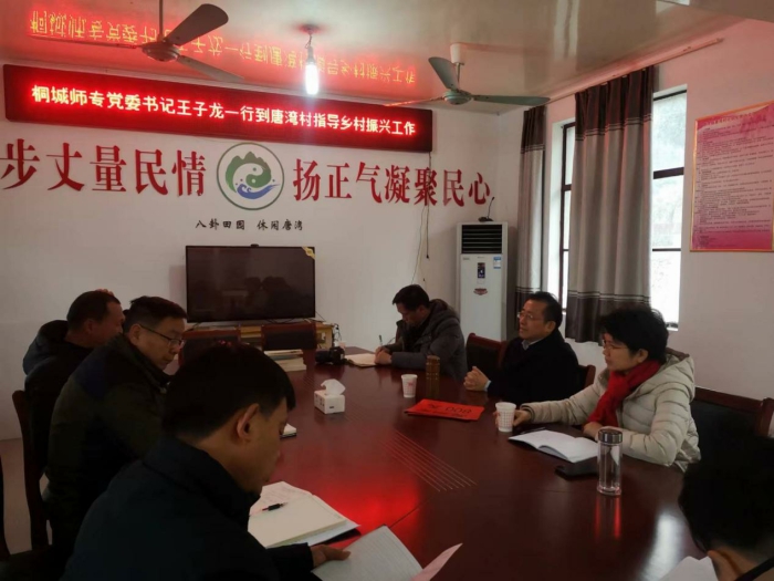 2015年11月起,根據市委、市政府統一安排,桐城師範高等專科學校對接幫扶桐城市唐灣鎮唐灣村。自結對以來,學校黨委高度重視定點幫扶工作,把脫貧攻堅作為重大政治任務,著力構建黨委統一領導、黨委書記負總責,校組織人事處具體分管,專門成立了幫扶工作領導小組,由辦公室統籌協調,校內各黨支部壓實幫扶責任的定點幫扶工作機製。自定點幫扶工作開展以來,校黨委堅持定期聽取定點幫扶工作匯報,專題研究製定定點幫扶工作實施方案,製定年度幫扶工作計劃並加以考核。校領導班子成員每季度到幫扶點考察指導工作,實地調研推進幫扶工作。幫扶幹部定期走訪結對戶,及時有效掌握結對戶近期情況,切實有效開展幫扶工作。