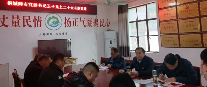 為深入學習黨的二十大精神,提升基層戰鬥水平,11月23日上午,桐城師專黨委書記王子龍赴結對幫扶村唐灣村上專題黨課,宣講黨的二十大精神。組織部部長王宏偉、宣傳部長伍建強陪同,唐灣村村兩委、駐村工作隊及部分黨員代表參加專題黨課學習。