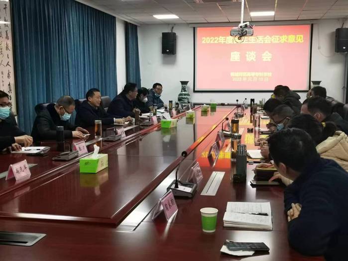為開好2022年度民主生活會,黨委通過發放征求意見表、個別走訪、座談調研等方式廣泛征求黨員、幹部和群眾意見建議。1月10日上午,校黨委書記王子龍召開征求意見座談會,黨委委員、組織部部長、組織人事處處長王宏偉,黨委委員、宣傳部部長、辦公室主任伍建強出席會議,各處室各係部主要負責人參加座談。