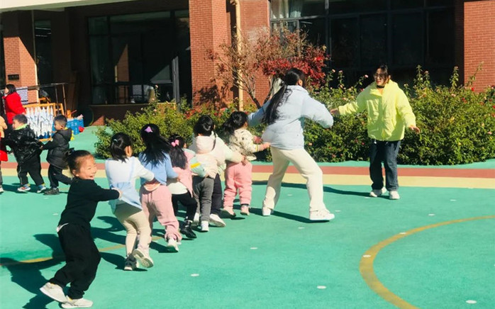 下圖為實習老師帶孩子們開展戶外遊戲的部分場景。