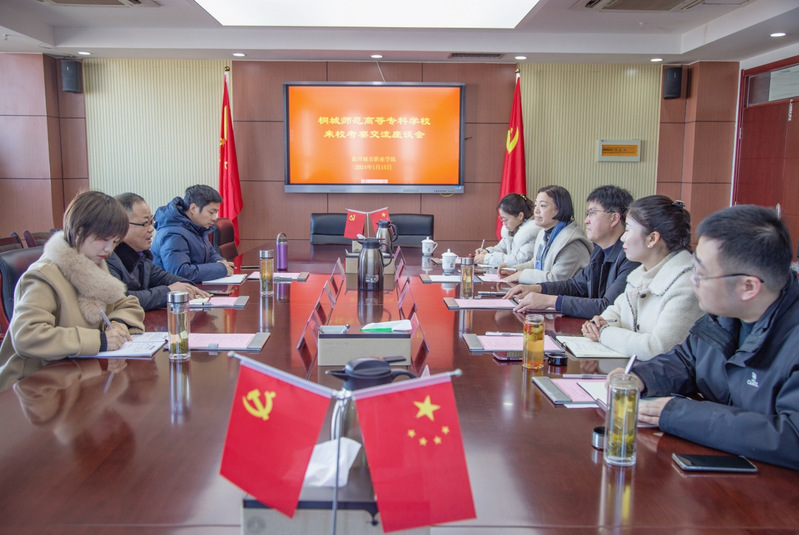 為助力高水平專業群建設,有序推進國際合作辦學工作,1月15日,校黨委委員、宣傳部長伍建強一行赴滁州城市職業學院學習考察。滁州城市職業學院黨委委員、宣傳統戰部長陳通,教育學院院長徐立娟,繼續教育學院院長許梅,國際合作交流中心負責人張靜陪同考察並參與交流座談。