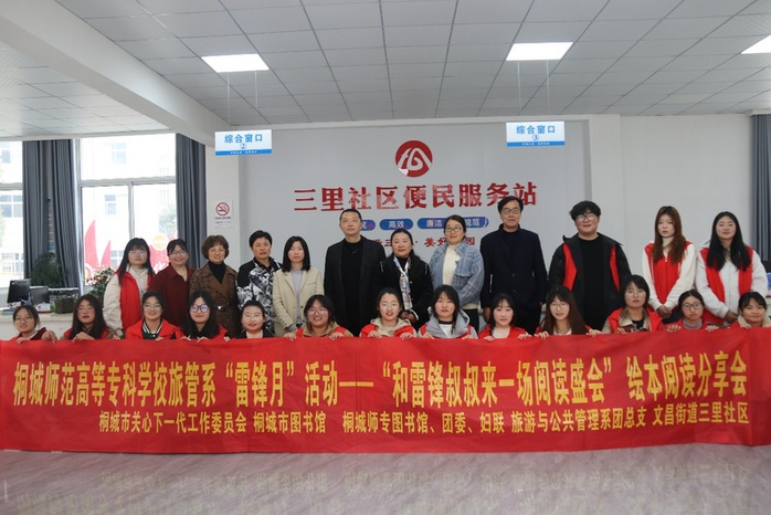 學校基層黨組織將黨建聯建共建平台作為傳播雷鋒精神的有效抓手,不斷創新形式、豐富載體。3月13日,旅遊與公共管理係學生黨支部聯合桐城市圖書館、校機關第七黨支部,組織學生黨員誌願者前往三裏社區閱讀空間,開展“和雷鋒叔叔來一場閱讀盛會”少兒繪本閱讀分享會活動。誌願者們通過情景演繹、互動問答、手工製作、故事分享多種模式相結合的授課方式,為幼兒園小朋友們分享了《雷鋒的故事》、《向雷鋒同誌學習》、《雨中的小紅傘》等繪本故事,全方位帶領小朋友們感受閱讀的魅力,理解雷鋒精神的新時代風貌。3月27日,學前教育係黨總支和學生代表赴桐城市特教學校開展“春暖花開 春‘鋒’送暖”主題黨日活動,與特教學校孩子共同開展做遊戲、手工製作活動,並組織召開“新時代如何弘揚雷鋒精神”座談會,在青少年中進一步傳播雷鋒精神,讓學雷鋒在新時代青年中蔚然成風。