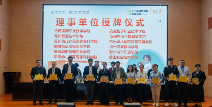 4月25日,2024年長三角高職院校學前教育聯盟年會在金華職業技術學院召開,我校被授予理事單位。校黨委委員、副校長王宏偉,學前教育係主任曹杏田等參加年會。