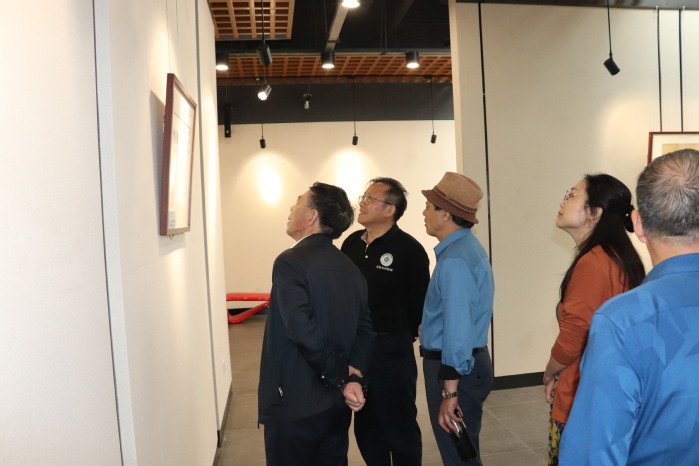 座談會之前,王子龍陪同莊華峰一行參觀了校美術廳《遺珍一一搜羅富——鳳陽明中都銘文磚拓片與當代部分書法名家磚文臨摹題跋展》主題展覽。