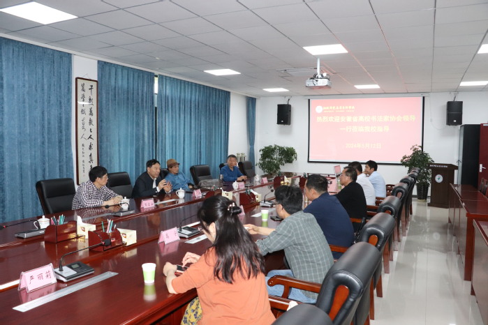 5月12日下午,安徽省高校書法家協會主席莊華峰一行來我校參觀交流並召開座談會。校黨委書記王子龍出席座談會,藝術與設計係、辦公室負責人以及部分書法教師參加座談會。
