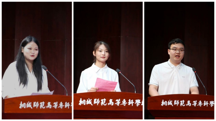 優秀畢業生代表學前教育係22級本科班李運慧同學、旅遊與公共管理係21級小學英語專業王怡琦同學,分別分享了他們在師專的成長曆程,感謝母校和恩師的辛勤栽培,感念美好的校園時光和同窗友誼。
