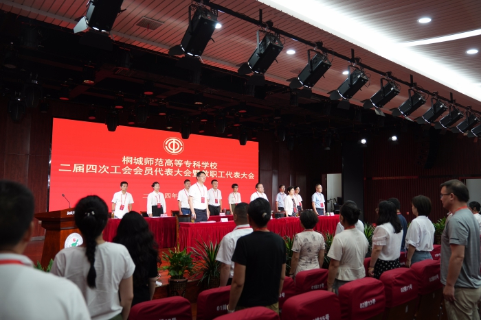 7月8日上午,在雄壯的國歌聲中,桐城師專第二屆第四次工會會員代表大會暨教職工代表大會在音樂廳召開。學校黨委書記王子龍,黨委委員、副校長王宏偉,黨委委員、宣傳部長伍建強出席,會議由黨委副書記、紀委書記張敏麗主持。來自學校不同崗位的正式代表和列席代表共81人參加會議。