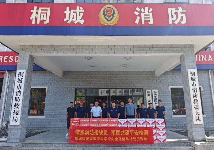 桐城市消防救援大隊大隊長張盛明、參謀漆明明、參謀劉亞婷熱情接待了王校長一行,並對桐城師專的此次慰問活動表示誠摯的感謝。