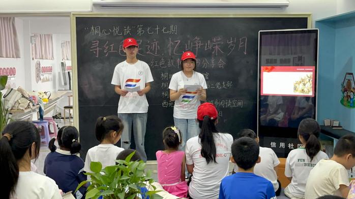 為弘揚革命精神,傳承紅色基因,8月13日,桐城師專“書香濃,潤紅心”誌願服務隊前往西苑社區紅色港灣城市閱讀空間參與了以“尋紅色足跡,憶崢嶸歲月”為主題的紅色故事閱讀分享會。