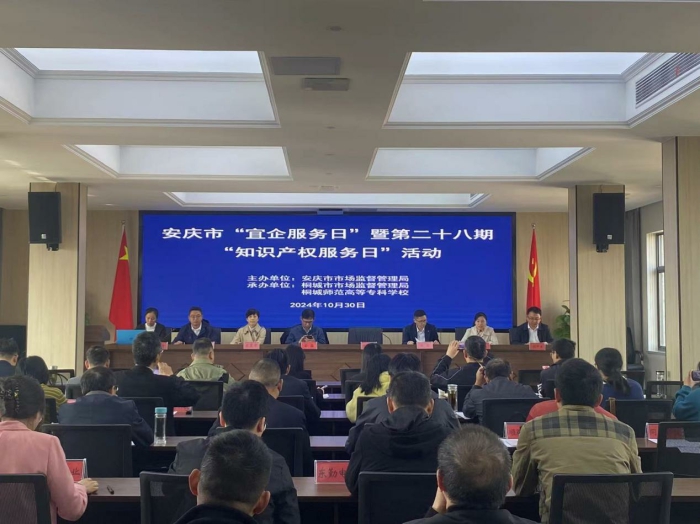 為深入學習貫徹習近平總書記考察安徽時提出的“加快科技創新和產業轉型升級”的重要指示精神,著力發揮知識產權在提升和保護原始創新能力、發展新質生產力和實現高水平科技自立自強等方麵的支撐性作用,10月30日上午,“宜企服務日”暨第二十八期“知識產權服務日”活動在桐城市市場監督管理局舉辦。此次活動由安慶市市場監管局主辦,桐城市市場監督管理局和桐城師範高等專科學校承辦,安慶市市場監管局黨組成員、副局長金鑫出席活動並講話,桐城市30餘家企業和部分服務機構受邀參加活動。