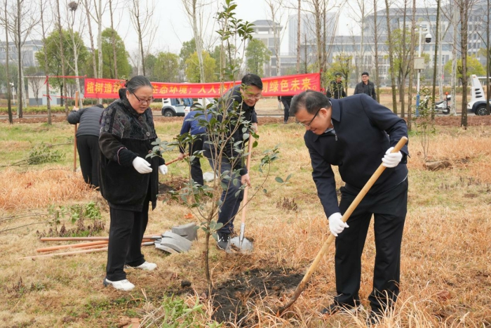 為深入貫徹落實生態文明思想,踐行綠色發展理念,3月12日,在第47個植樹節到來之際,桐城師範高等專科學校組織開展了以“植樹造林,保護生態環境;人人參與,共創綠色未來”為主題的植樹節活動。校領導王子龍、王宏偉、汪誌耿,各處室、各院係負責人以及學生誌願者共同參加了此次活動,為校園增添新綠,以實際行動為建設美麗校園貢獻力量。說明:DSC01186