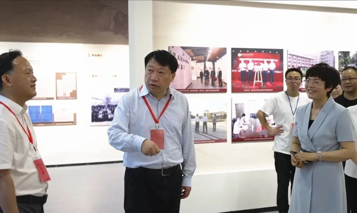 圖為張君毅實地察看桐城師專校史館。