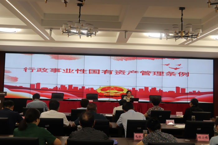 安慶市財政局產權管理科副科長楊萌星解讀了《行政事業性國有資產管理條例》(以下簡稱《條例》),她從《條例》出台背景、起草總體思路、主要看點以及全文內容作了具體宣講,加強了與會人員對《條例》的認識和理解。