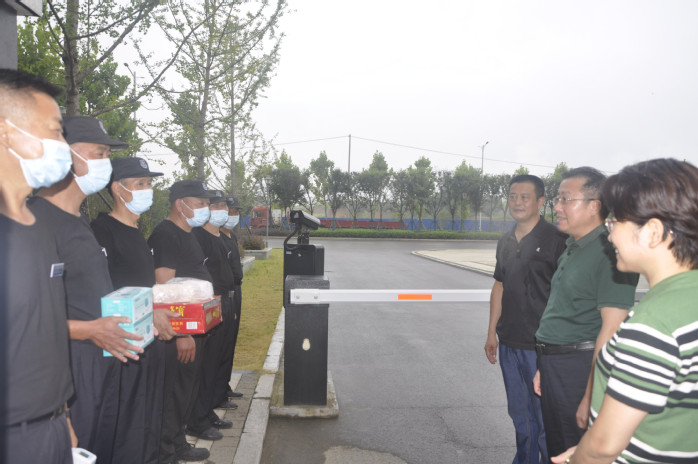 當前疫情防控形勢嚴峻,尤其新校區搬遷工作進入衝刺的關鍵階段,學校各單位和項目工作人員連續放棄休息日,在高溫天氣下持續開展工作,做好疫情防控工作、暑期安全生產和防暑降溫工作尤為重要。校黨委一行首先到校保衛處,慰問在一線安保工作人員,代表學校感謝保衛人員為新校區安保、校園防疫檢查等各項基礎工作做出的貢獻,詳細了解校園封閉管理和巡邏值守情況,仔細叮囑他們在嚴格執行校園疫情防控流程和維護校園安全穩定的同時,一定要做好防暑降溫和自身防護。
