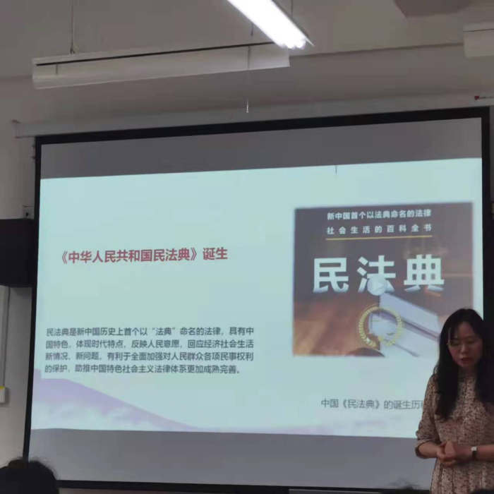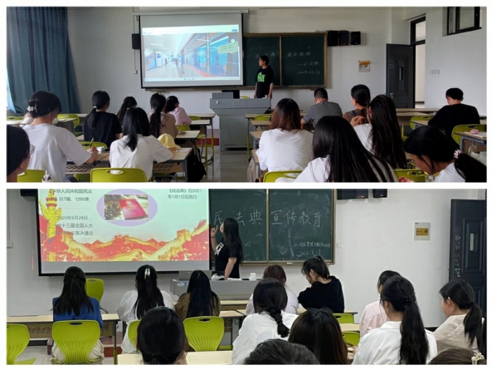 校內各部門分專題、多層次組織黨員幹部師生群眾參加民法典主題普法課。5月23日,黨委理論學習中心組第五次集體學習會議專題學習《中華人民共和國民法典》,推進領導幹部做學習、遵守、維護《民法典》的表率。各處室通過觀看視頻、以案釋法相結合的方式組織教職員工學習《民法典》;思政教師在《思想道德修養與法律基礎》課程教學中安排《民法典》專題學習,各係部以生活中的民法知多少”“共同學習《民法典》”等主題班會的形式,幫助學生學習了解民法典內容及精神,引導學生深入理解民法與日常生活之間的聯係,教育學生不僅要有尊法守法的意識,更要有學法的主動性,真正做到學法、懂法、守法、用法。