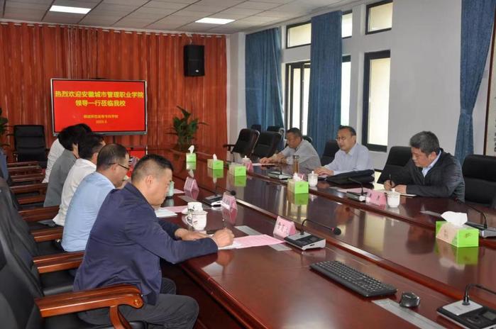 5月5日上午,安徽城市管理職業學院黨委副書記孫建華攜該校學生處、保衛處等部門主要負責同誌一行來我校考察交流。校黨委書記王子龍主持座談會,副校長程玉梅,黨委委員、宣傳部長伍建強出席。