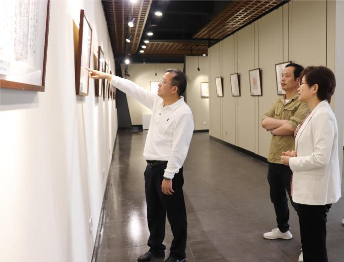 王子龍駐足觀摩、細細品味展出的每一幅磚文臨摹、磚文題跋。他指出,這些作品能夠讓人們從古城牆磚拓片的曆史脈絡中,一窺先人建築工程的艱辛不易,從另一個維度感受明中都曆史和文化的厚度與溫度,既能夠讓人們直觀地感受書法家的書寫風格,還能從拓片上看到牆磚在風化剝落後所遺留下的滄桑與厚重,縱深研究特定曆史時期的政治、經濟與文化形態。藝術與設計係要加強宣傳,讓師生感受到悠久博大的明中都文化,開闊師生們的文化視野。他指出,美術館要充分發揮展館作用,及時更新,高頻次舉辦書畫、藝術展陳,豐富文化內涵,為廣大師生提供精神文化產品供給,賦予校園文化熏陶。