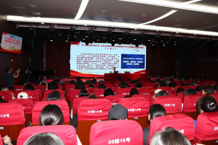 為深入學習貫徹習近平文化思想,進一步落實好習近平總書記關於高校思政課建設的講話精神,落實學校領導班子講思政課的要求,6月12日下午,校黨委書記王子龍在學校音樂廳為學生講了一堂題為《學習貫徹習近平文化思想 弘揚桐城派文化當代價值》的思政課。副校長程玉梅,黨委委員、副校長王宏偉,黨委委員、宣傳部長伍建強等出席講座,學校相關係部負責人以及2023級小學教育專業文、理班學生代表等200餘人現場聆聽。