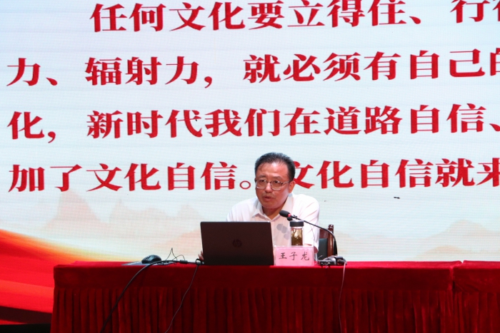 王子龍緊扣習近平文化思想,以桐城派文化的當代價值為切入點,為同學們講解闡釋了學習貫徹習近平文化思想、契合習近平文化思想的桐城派文化當代價值、推進桐城派文化傳承與發展三個方麵內容。在一個半小時的講學中,王子龍以全新的視角研究桐城派,從經典作家身上,以豐富的事例闡釋學理、哲理、道理,講座貼近實際,精辟地概括了桐城派文化當代價值的七個特征:忠誠務實的愛國情懷、自強不息的進取精神、禮讓包容的處世理念、中西合璧的教育思想、文理兼備的學術視角、經世致用的務實態度、兼收並蓄的發展理念。提出弘揚桐城派文化的思路和舉措,教育引導學生牢記囑托、不斷厚植家國情懷,涵養進取品格,勵誌擔當大任,積極投身中國式現代化的偉大實踐,為強國建設、民族複興貢獻青春力量。整堂課講得具有很強的前瞻性、可操性和指導性,更有針對性和時效性,為同學們講授了一堂生動鮮活的思政課,也為我校思政課教師展示了高質量的教學示範。IMG_8042