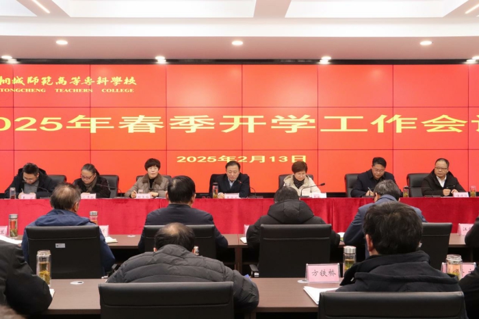 2月13日上午,桐城師專召開2025年春季開學工作會議。黨委書記王子龍出席會議並講話。校領導班子全體成員、全體中層負責同誌參加會議。會議由副校長王宏偉主持。說明:IMG_2109
