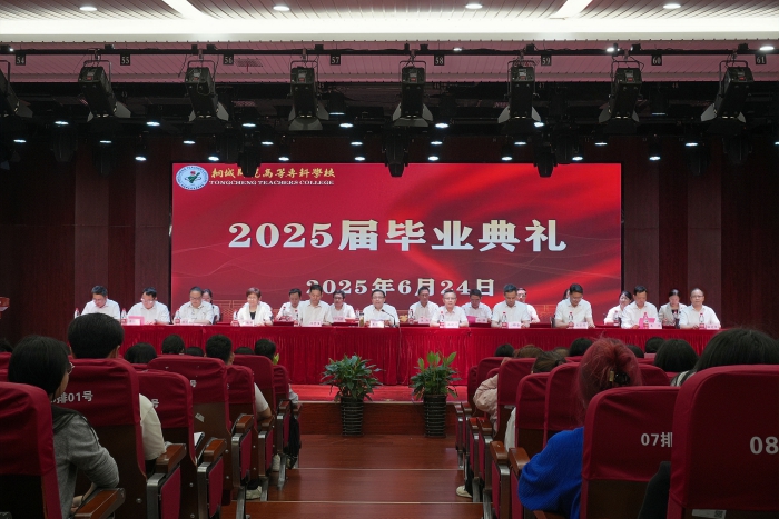 2025年6月24日上午,桐城師範高等專科學校2025屆學生畢業典禮在莊嚴的國歌聲中隆重舉行。校黨委書記王子龍主持典禮,校長江貴生出席並發表講話。安慶師範大學黨委常委、副校長徐曉寧,教務處處長潘錦雲,安慶工業學校副校長吳傑,舒城職業學校副校長李彬等應邀蒞臨典禮。全體校領導、中層以上幹部、畢業班輔導員、優秀校友代表、師生代表400餘人參加典禮,共同見證2765名2025屆畢業生圓滿完成學業。說明:DSC05456_副本